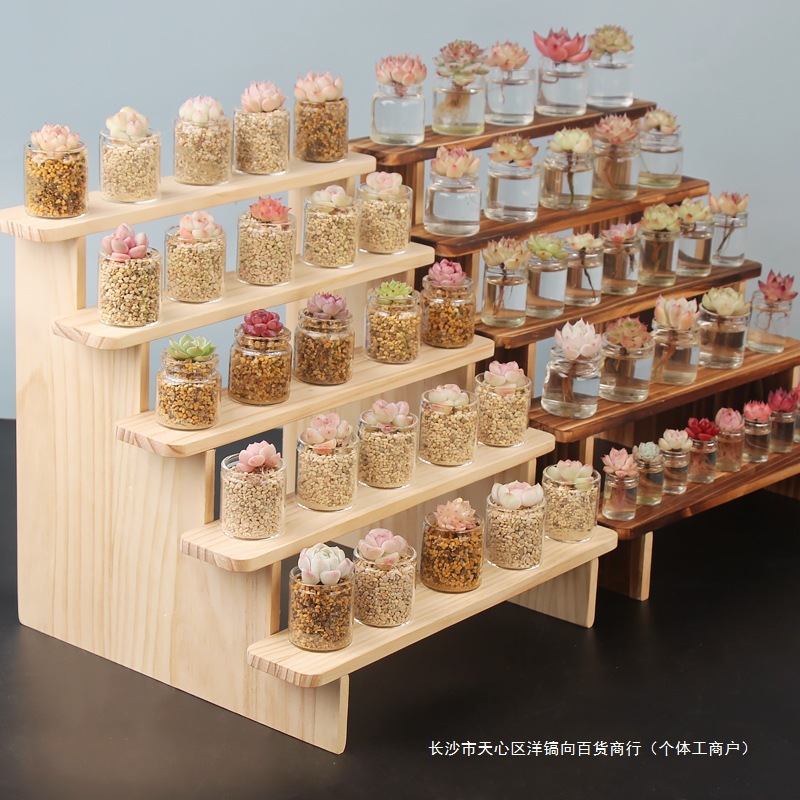 実木展示棚収納棚デスクトップ潮手作りブラインドボックス人形多肉緑植階段小棚芸術風