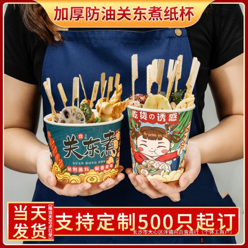 おでんカップ包装箱商用卸売り紙コップ蓋紙碗箱付き使い捨てコップ串無