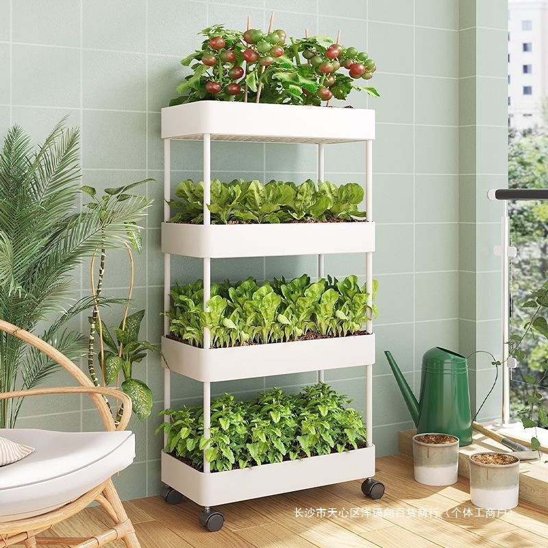 ベランダの野菜を植える多層のワゴン車の物置棚の台所の野菜のかごの家庭用の野菜の鉢の縫いの収納棚の植木鉢