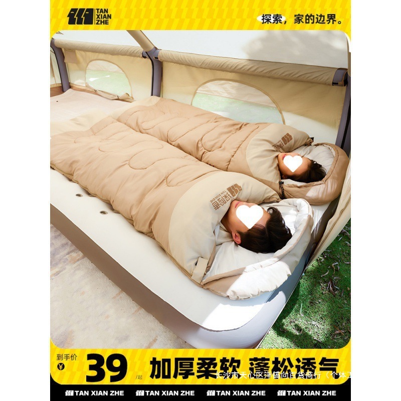 探検家の寝袋屋外成人児童は汚れをあけて防寒冬キャンプのシングル二人の布団を厚くした