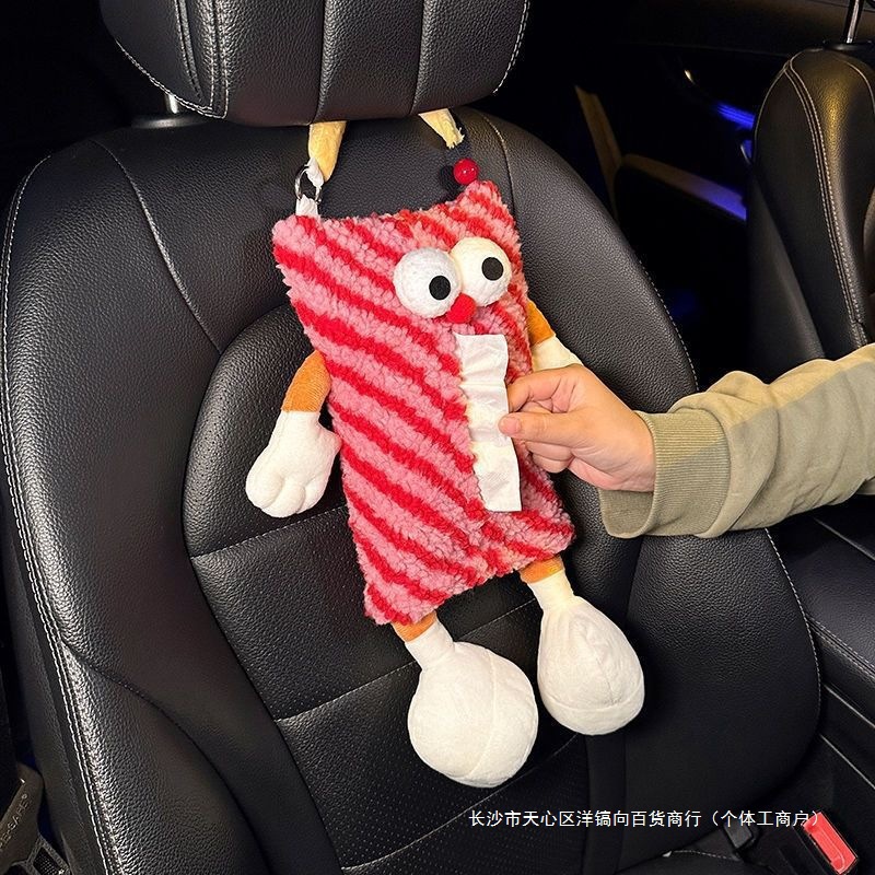 旅行車のティッシュケースのアイデアがかわいい三輪車のバッグを掛けて自動車用ティッシュバッグの車内にぶら下がっているぬいぐるみ