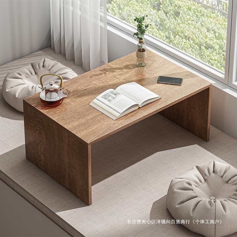 窓の小さいお茶のいくつかのシンプルな現代のベランダの畳の小さいテーブルのミニ日本式の座る低いテーブルの客の智高円
