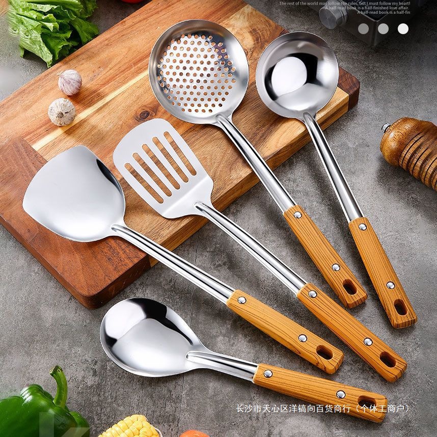 パーマ防止の取っ手のステンレスの鍋のシャベルのスプーンはスプーンを漏らして野菜のシャベルの台所用品のセットの台所を炒めます。