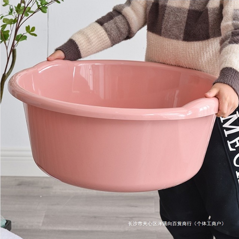 プラスチック洗面器は大きいサイズを深めて洗濯します。