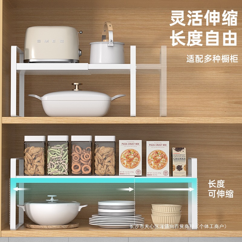 伸縮可能な台所の棚のカウンターの棚の仕切り板の階層棚の棚の中で鍋棚のデスクトップの小さい棚を収納して決めます。