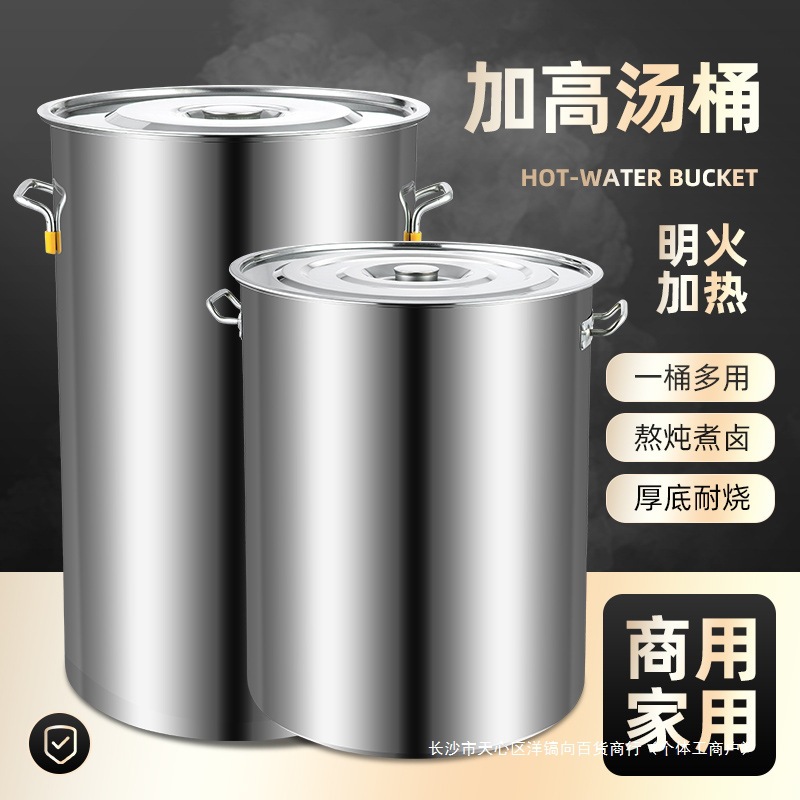 特厚加高ステンレス桶丸桶蓋付き商用特大スープ桶ハロゲン桶煮込み鍋大容量スープ鍋