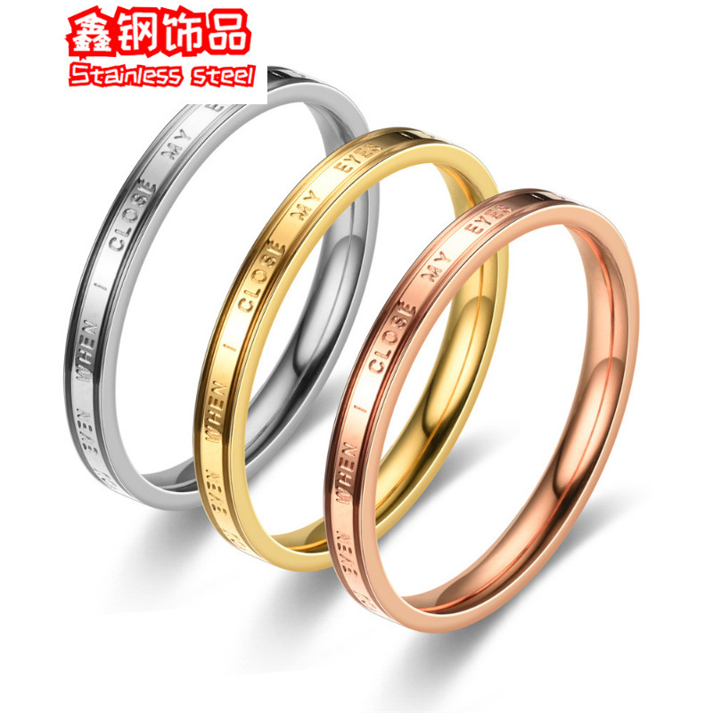 ファッションシンプルinsチタン鋼の英語のアルファベットの指輪の女性は色が落ちていません。