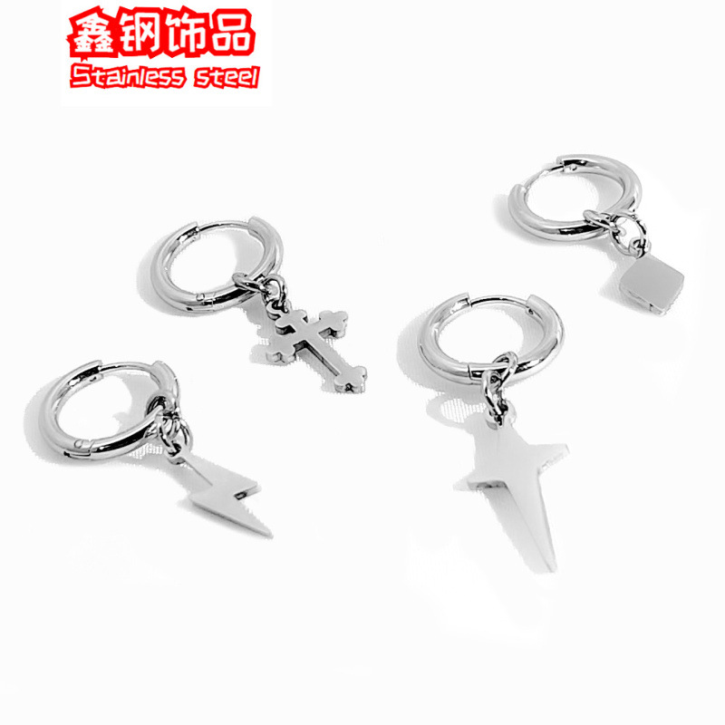 韓国スタイルメンズイヤリング、ステンレススチール製人気クロスイヤリング、サークル型パーソナライズイヤリング、高級イヤリング卸売