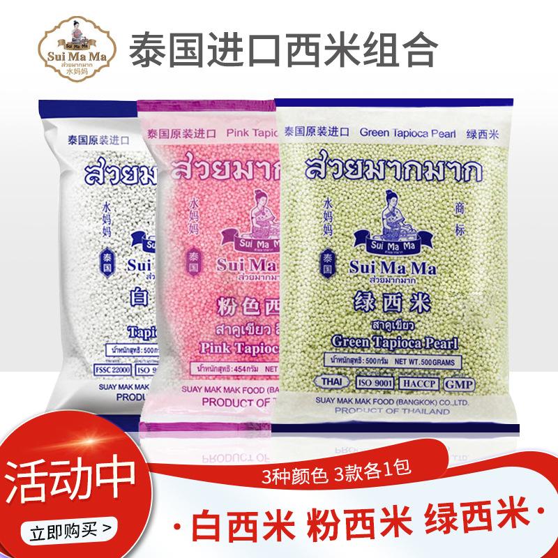 タイの水のお母さんの西米のピンクの西米の3包みのミルクティーの店の透明な水晶のちまきのココナッツの汁の西米の露の雑さ