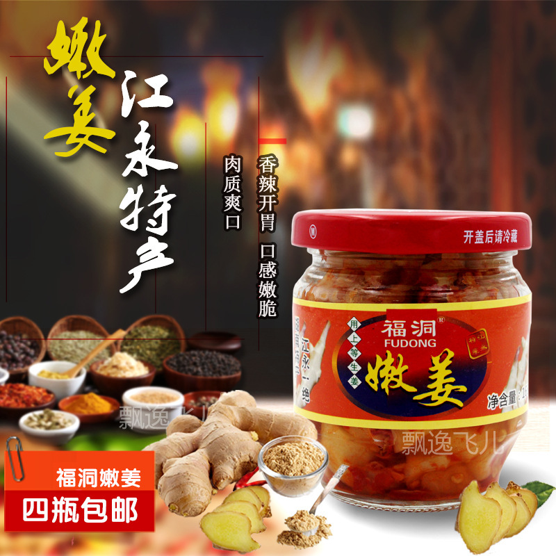 江永福洞若姜湖南永州特産みじん切り唐辛子香子姜刀インゲンマメの前菜は4本で郵送されます。