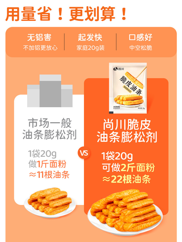 尚川の脆い皮の油条の膨松剤はアルミニウムがなくてふわふわしている泡立て粉の家庭用の麻の花のネギの油餅を揚げて原料を配合します。