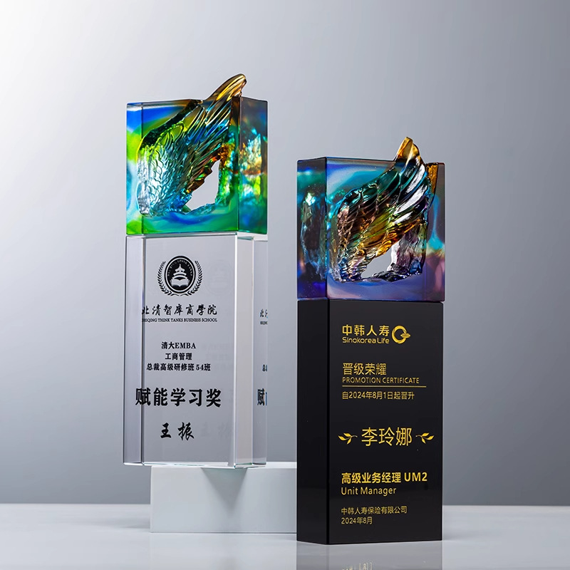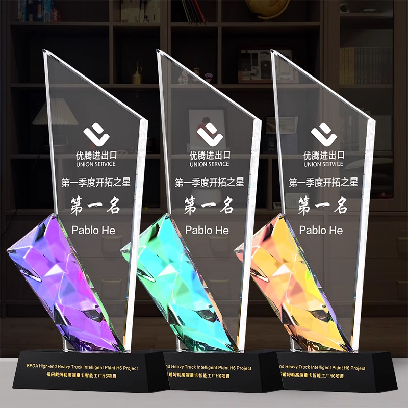 クリエイティブなカラフルなクリスタルトロフィー企業優秀従業員年次総会名誉賞高級退職記念品