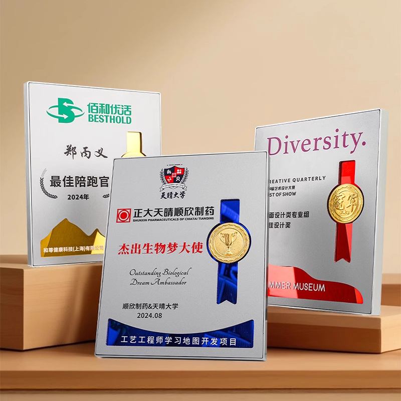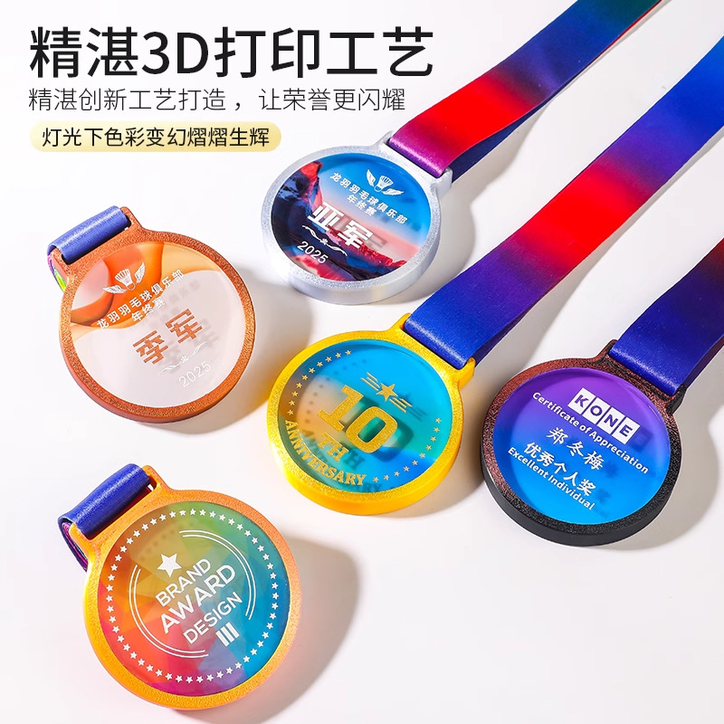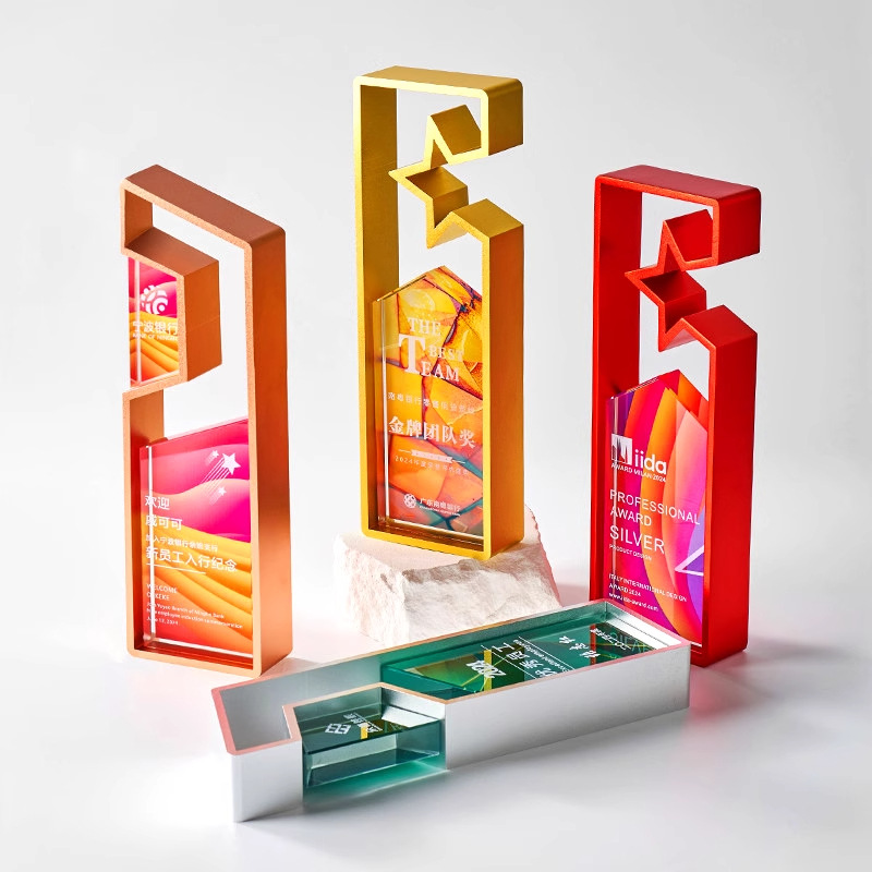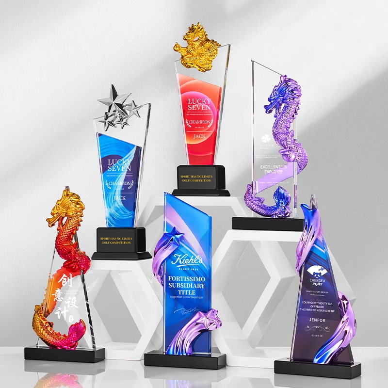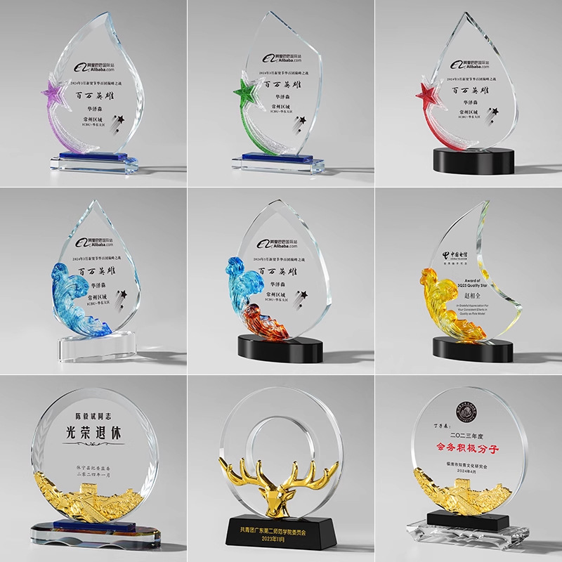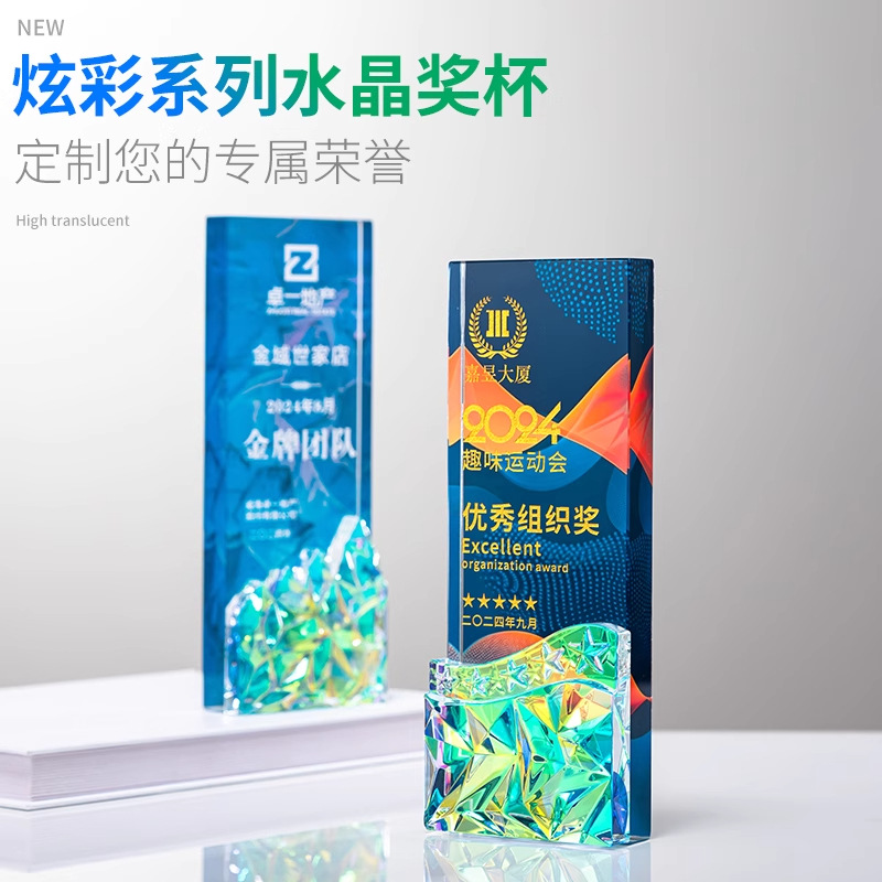 新しいカラフルなカラー印刷クリエイティブクリスタルトロフィーハイエンド雰囲気ガラスメダル年次総会優秀な従業員の退職記念