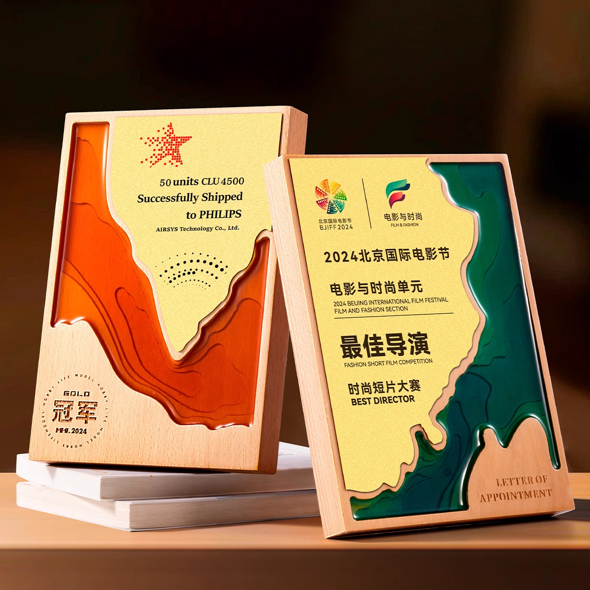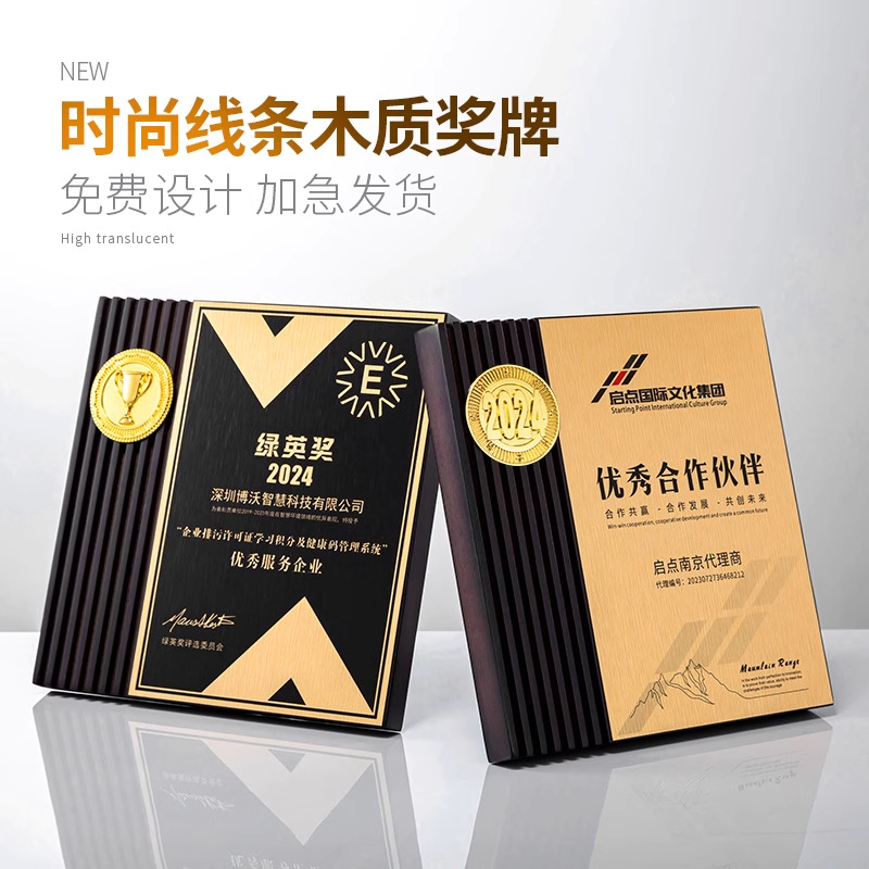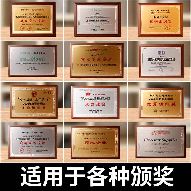 広東省木製トレイ無垢材メダル製造木製認定ディストリビューター認定製造金箔プラーク証明書