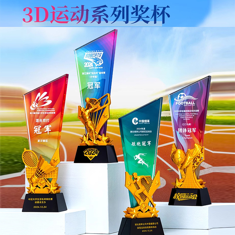 スポーツクリスタルトロフィー卓球サッカーバスケットボールテニスキャンパス企業コンペ賞メタルタグ