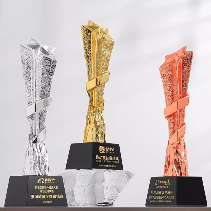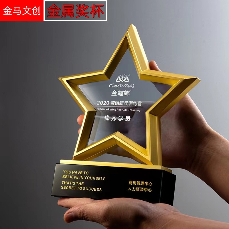 現物五角星亜鉛合金トロフィー立体k 9五星金属トロフィー東莞現物無料デザインロゴ