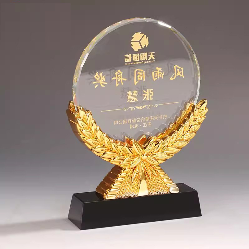 麦穂水晶トロフィーオーダーメイド創意彫刻優秀社員周年記念栄誉授賞東莞現物