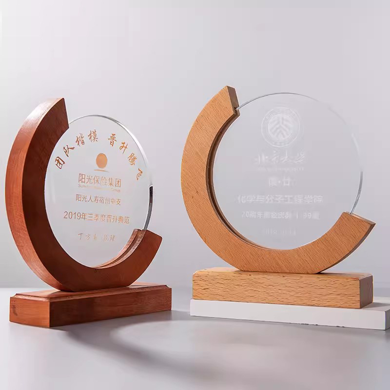 木製トロフィー栄誉メダル実木水晶トロフィー卒業シーズン忘れられない恩師記念プレゼント無料彫刻