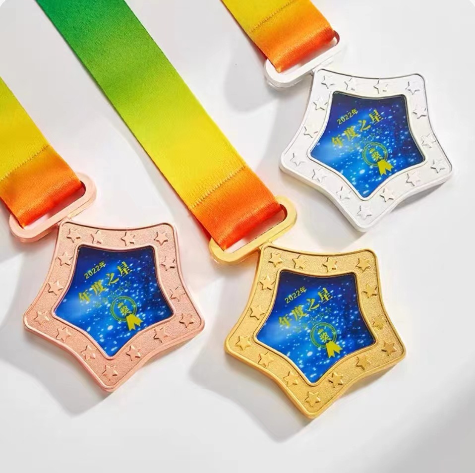 学校の運動会のメダルは金属の色刷りの水晶を作ります。