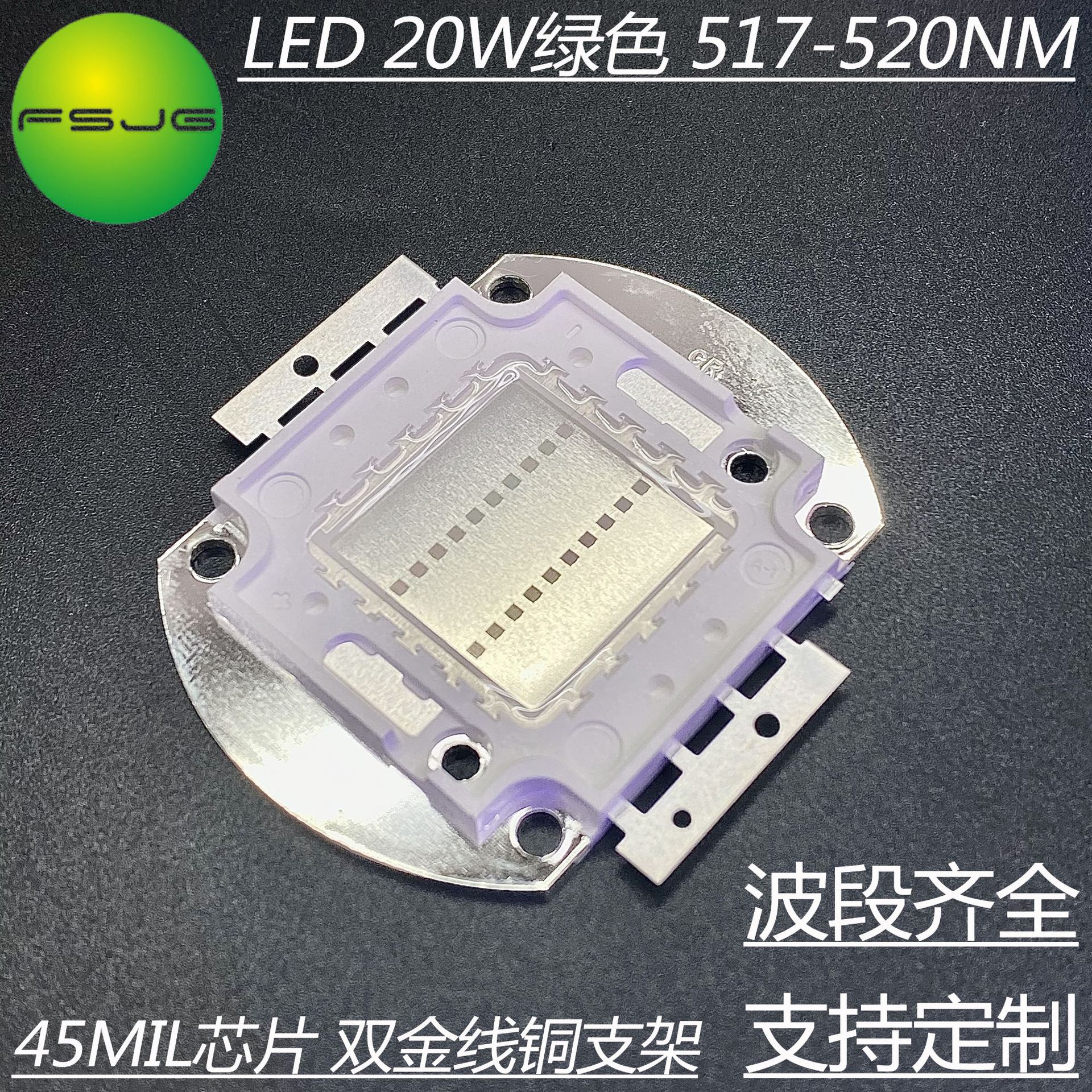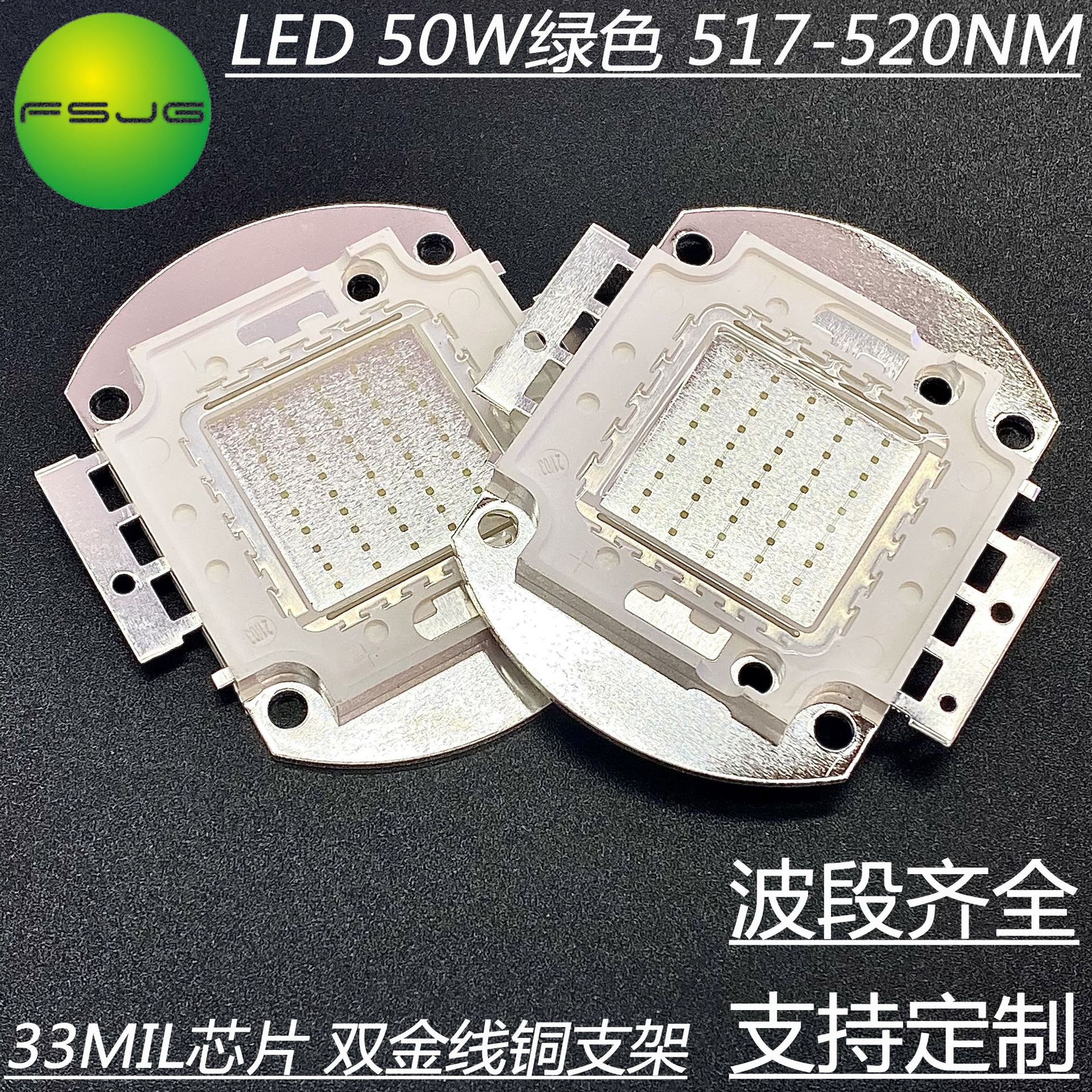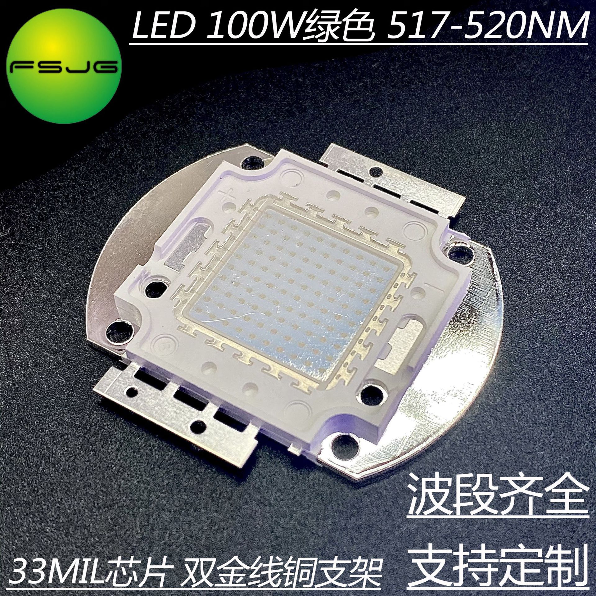 Ledハイパワー集積電球100wグリーン517-520nm 33milチップダブル金線銅ブラケット