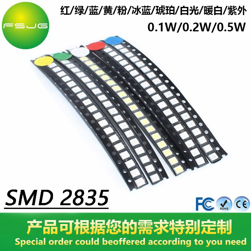 メーカー直販smd2835パッチ式led電球赤緑青黄白暖かい紫外琥珀氷青ピンク