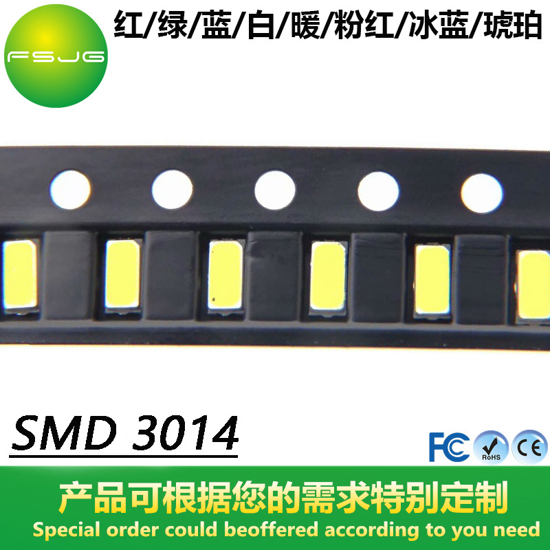工場直売ledチップ式3014灯珠赤緑蘭氷青ピンク琥珀白ハイライト光源ライト