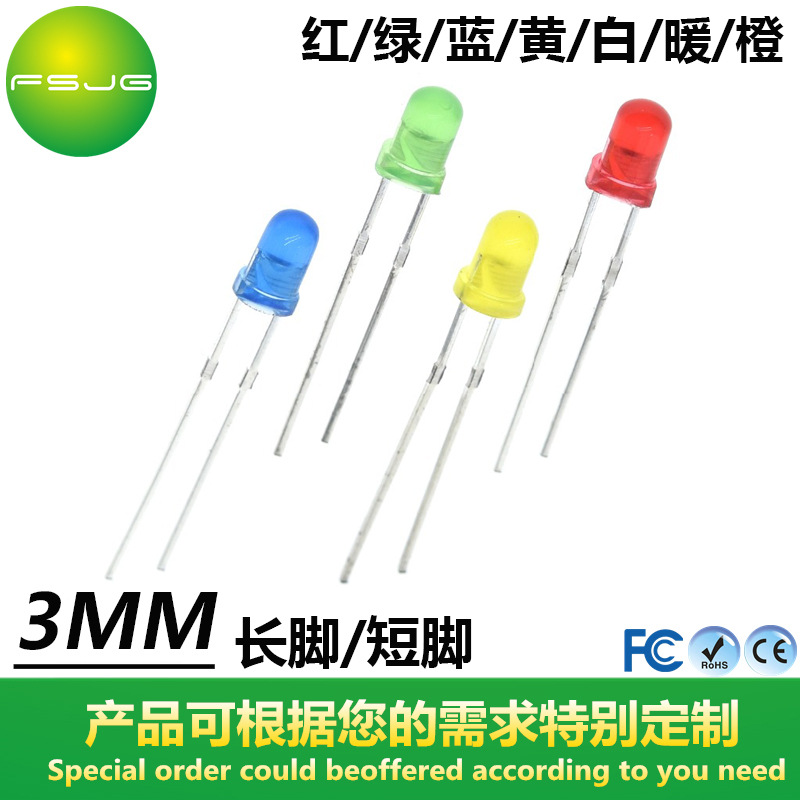 メーカー直販プラグインled電球f3短足3mm丸頭赤緑青黄橙白暖発光ダイオード