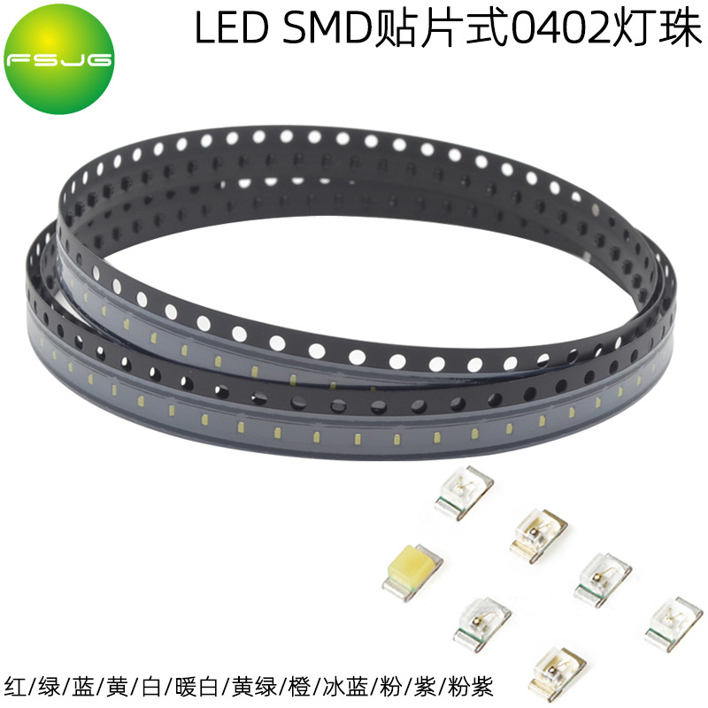Smd赤色パッチledブルーレイオレンジ赤黄氷青ピンク紫普緑緑白灯芯0402灯