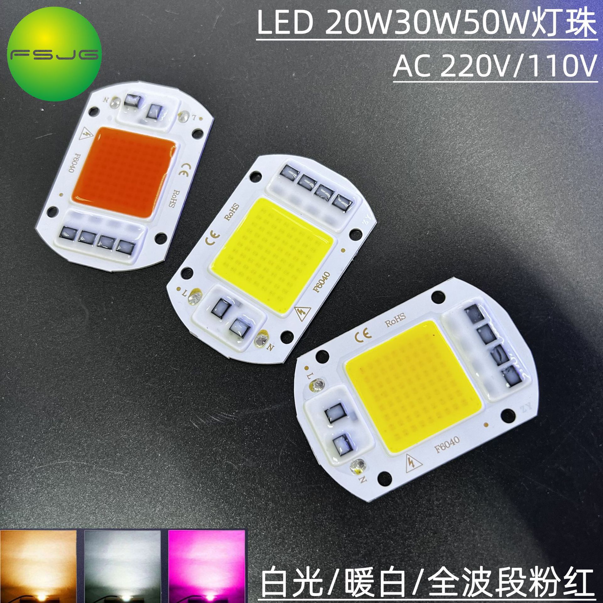 駆動レス220v110vハイパワーcob集積電球20w/30w/50w投光器led植物光源