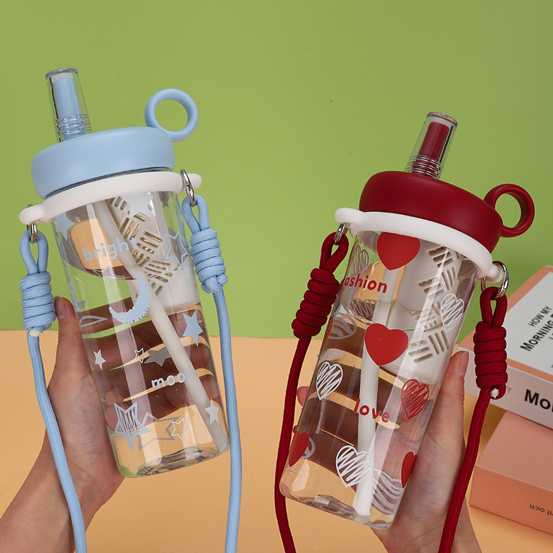 高颜値児童ストロー付きプラスチックカップ耐高温男女コップ学生が学校に通って、家庭用コップを携帯することができる