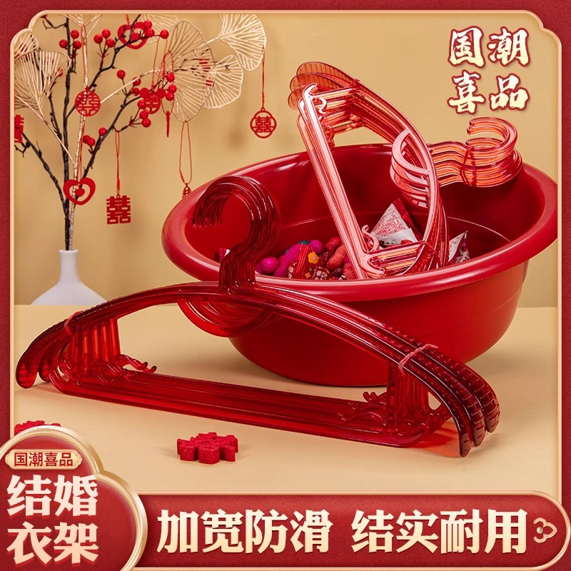プラスチックハンガー透明滑り止め家庭用引っ越し赤ピンク学生寮用新入生入学結婚部屋配置
