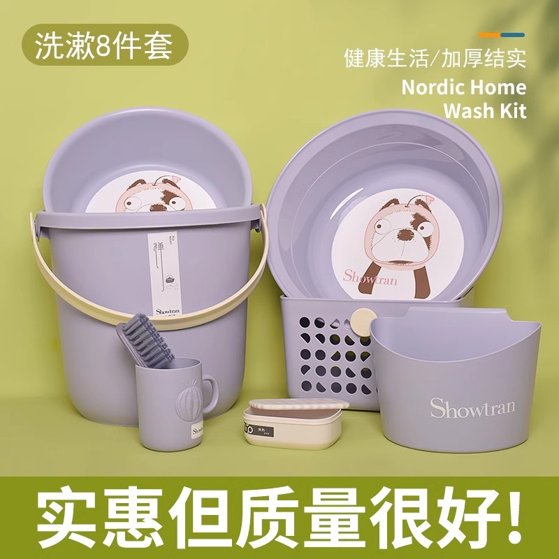 ファッション家庭用貯水バケツ浴室ホーム寮セット洗面器洗濯バケツ学生厚いプラスチックバケツ洗面器