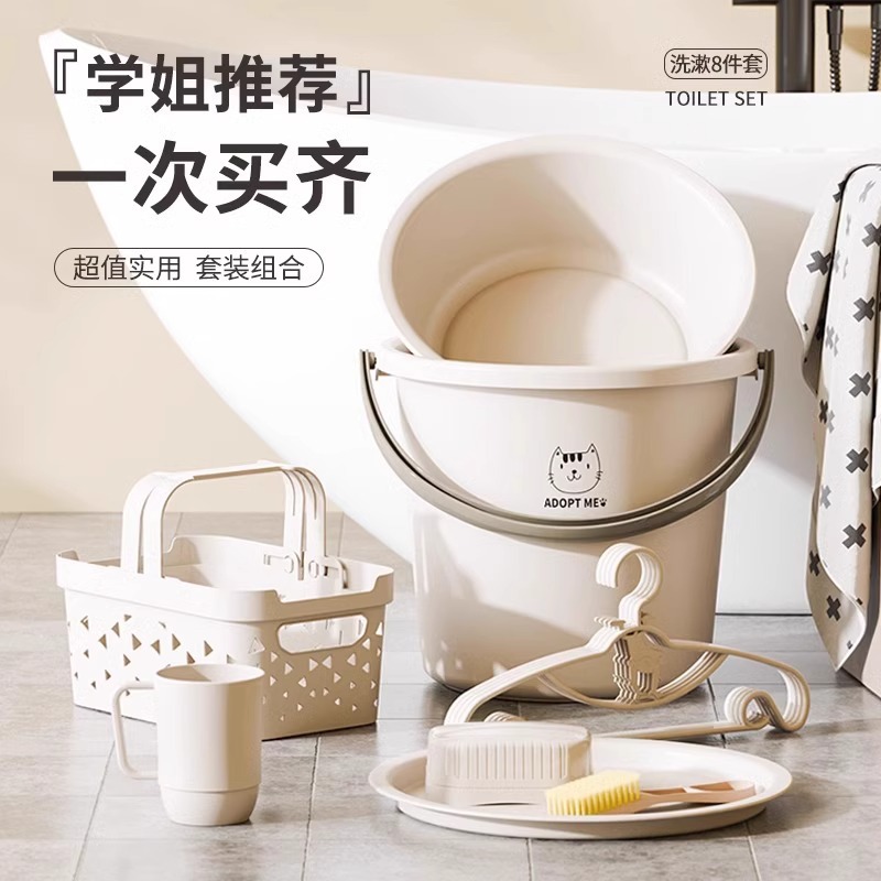盆桶6点セット家庭用蓋付きプラスチックバケツ洗面器洗面用品セット寮学生桶卸売り