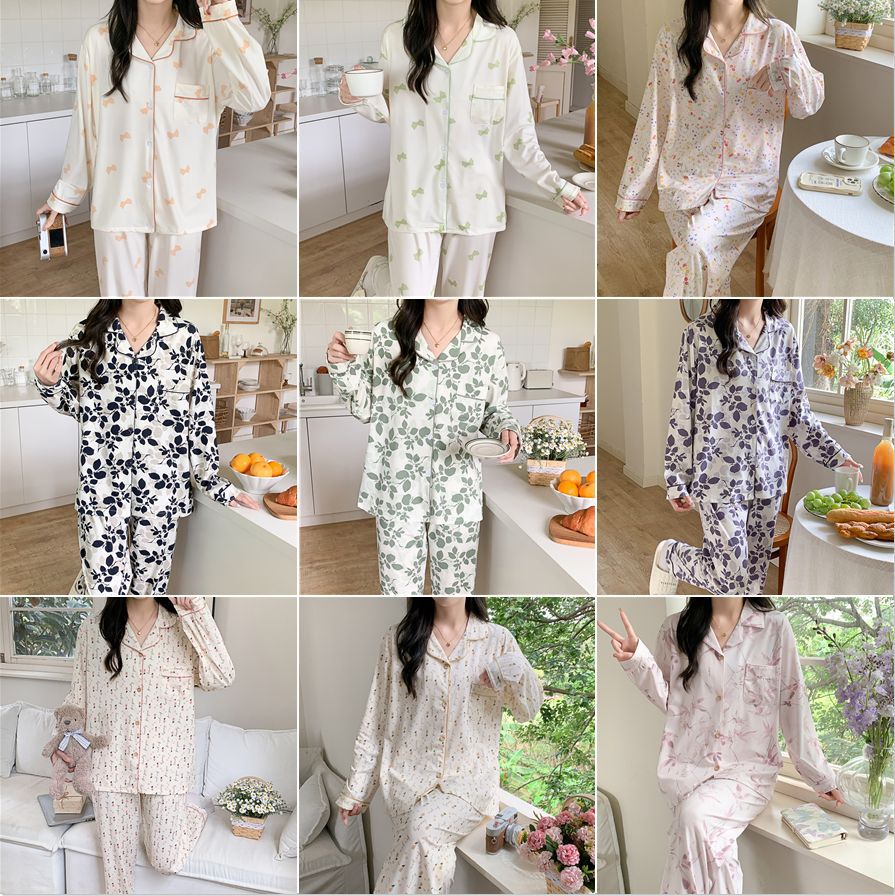 クロスボーダー風 インス風 ラフで可愛い パジャマ レディース 長袖 長ズボン ホームウェア 外出着としても着用可能