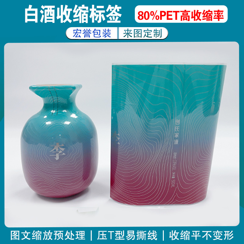 ワインボトル印刷収縮ラベル異形ボトル熱収縮フィルム印刷プラスチックフィルムt型引き裂きやすいテープ金属効果