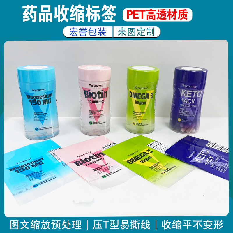 医薬品プラスチックボトル収縮性フィルムラベル異形ボトル熱収縮性ラベルpvc収縮性フィルムpetカラー印刷収縮性ラベル