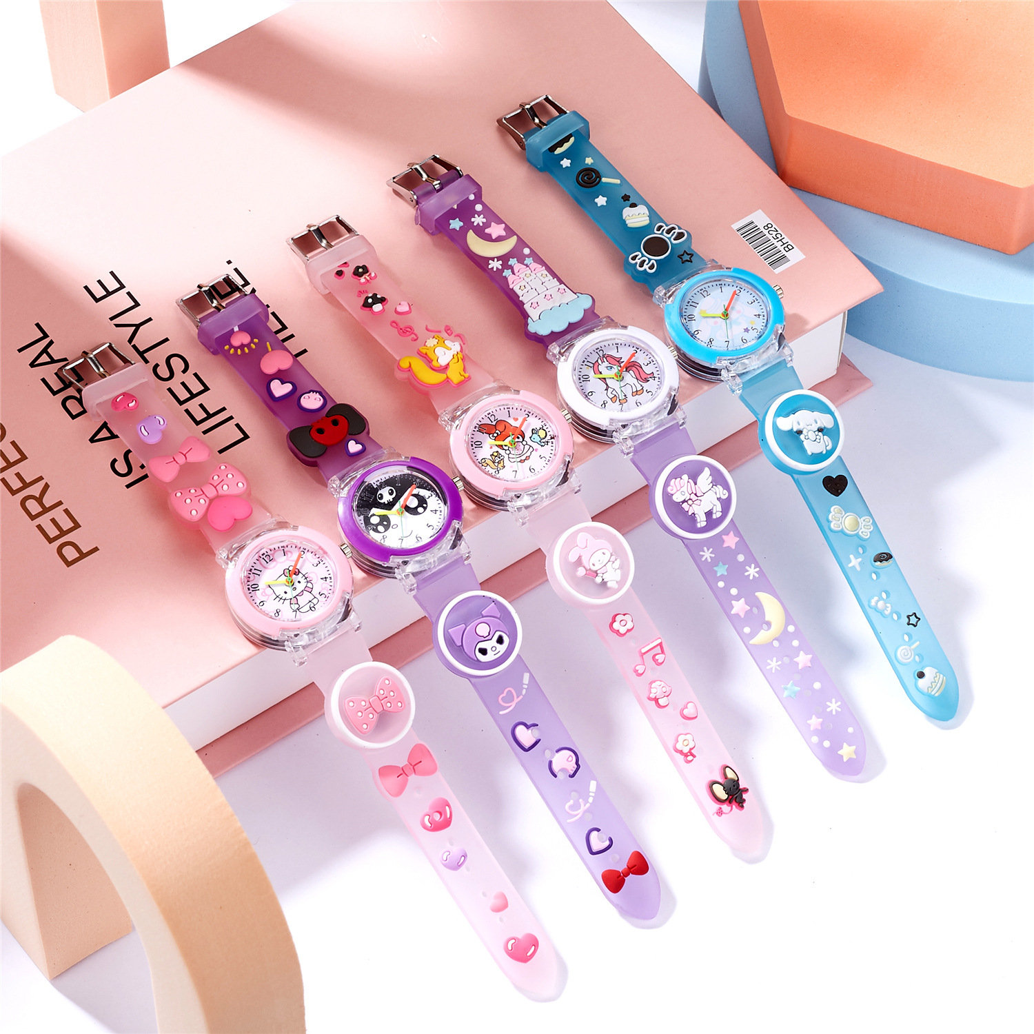 漫画発光3dバンド新型シリコン腕時計学生党女子石英児童腕時計夜光発光クロスボーダー装着