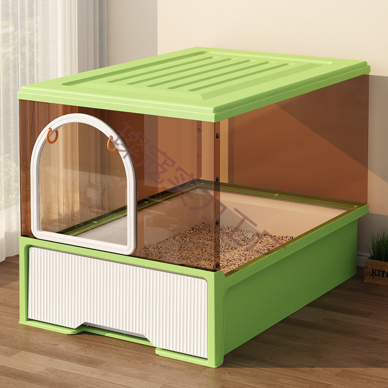 漏れ防止設計の猫トイレ、防臭、完全密閉、特大、飛沫防止猫トイレ、子猫、新しい防砂、耐性