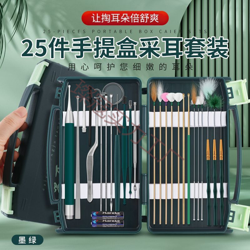 耳かきツール一式、上級技術者専用セット、耳かき用グースフェザースティック、家庭用耳かきスプーン(ライト付き)