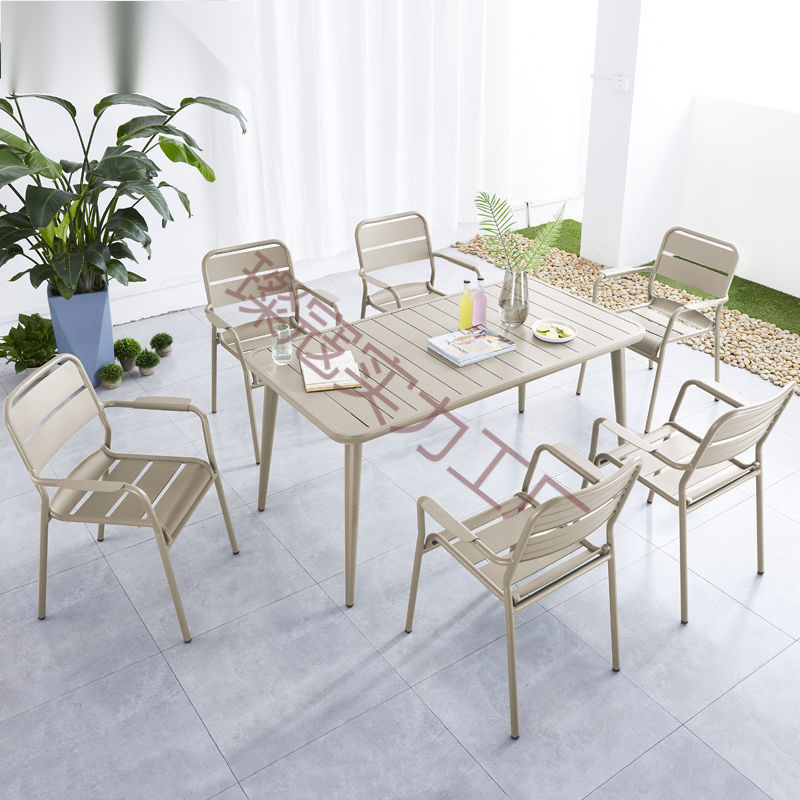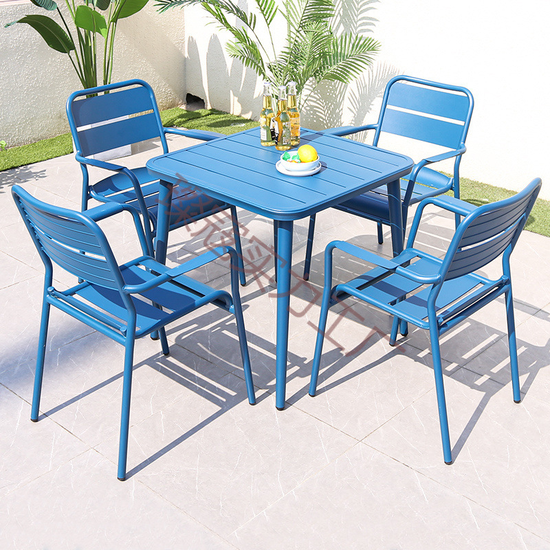 屋外中庭ガーデンバルコニーレジャーテーブルと椅子屋外オープンエアカフェミルクティーショップオールアルミニウム合金カラーテーブルと椅子