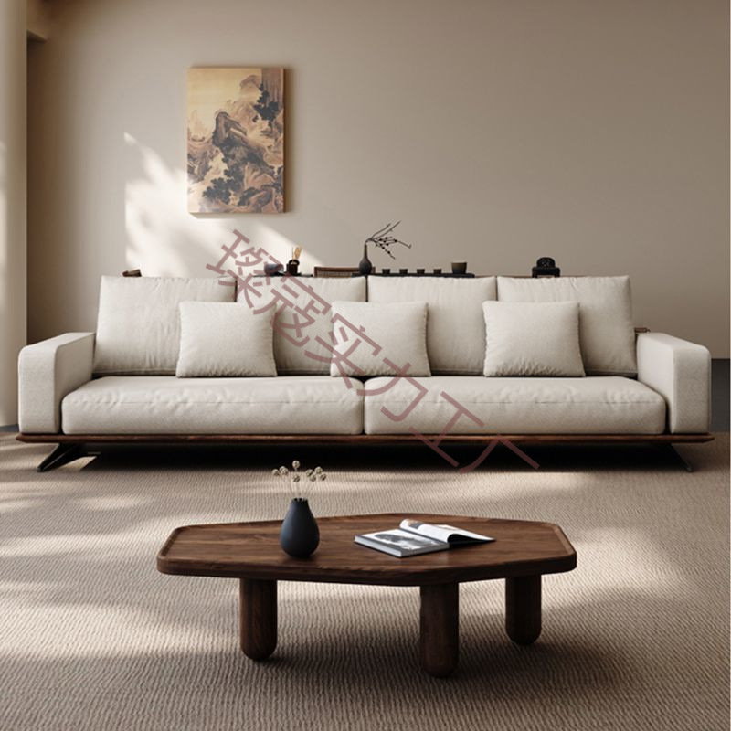 コットンとリネンのソファブラックウォールナット無垢材ストレートリビングルーム2025新しいスタイルの小さなアパートモダンなシンプルなヴィラ大きなフラットフロア