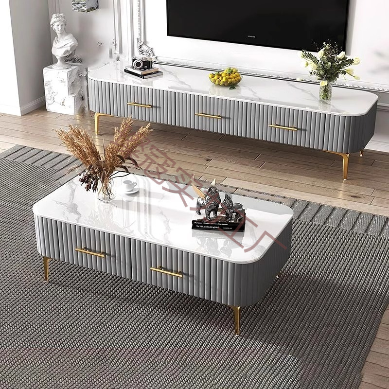 スレートテレビキャビネット小さなアパートシンプルなリビングルームホームモダンライト高級クリームスタイルフロアコーヒーテーブルテレビキャビネットの組み合わせ