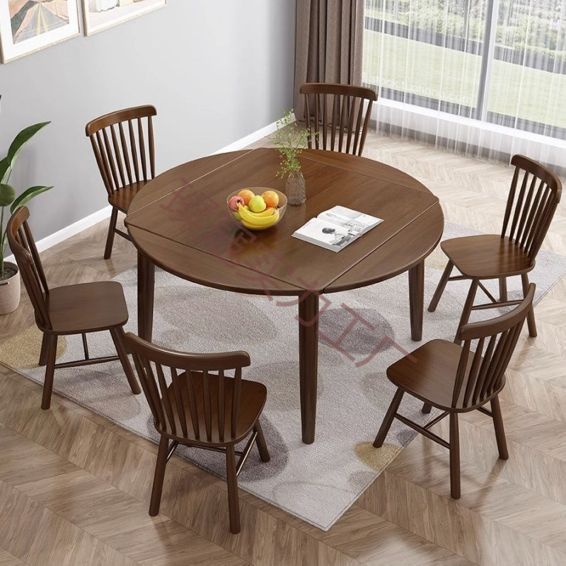 全無垢材ラウンドテーブル、正方形と円形の兼用ダイニングテーブルと椅子の組み合わせ、家庭用四面折りたたみ式正方形と円形の伸縮式ダイニングテーブル