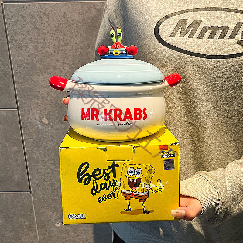 2025年新作 スポンジ・ボブ・スター インスタントラーメンボウル 大型 学生両耳 蓋付き 大容量 カニボスの家