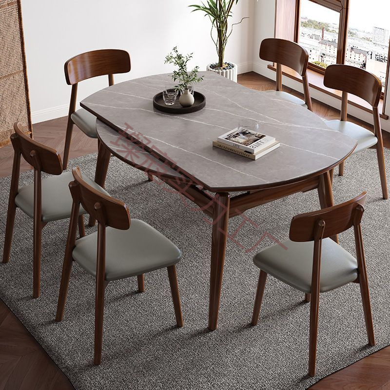 北欧スタイルのスレートダイニングテーブルと椅子の組み合わせ、拡張可能な家庭用正方形と正方形の両用小型無垢材折りたたみダイニングテーブルログ
