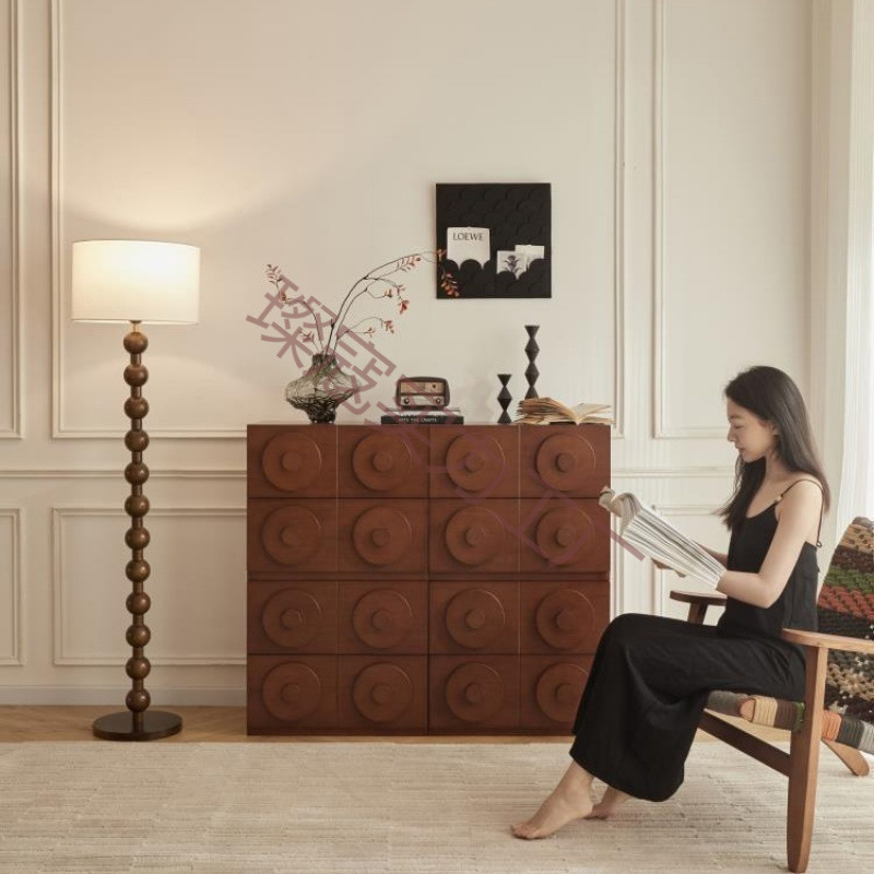 中世スタイルのダストキャビネット無垢材カーメンキャビネットホームレトロテレビキャビネット床置き組み合わせ収納キャビネットリビングルーム収納サイドキャビネット