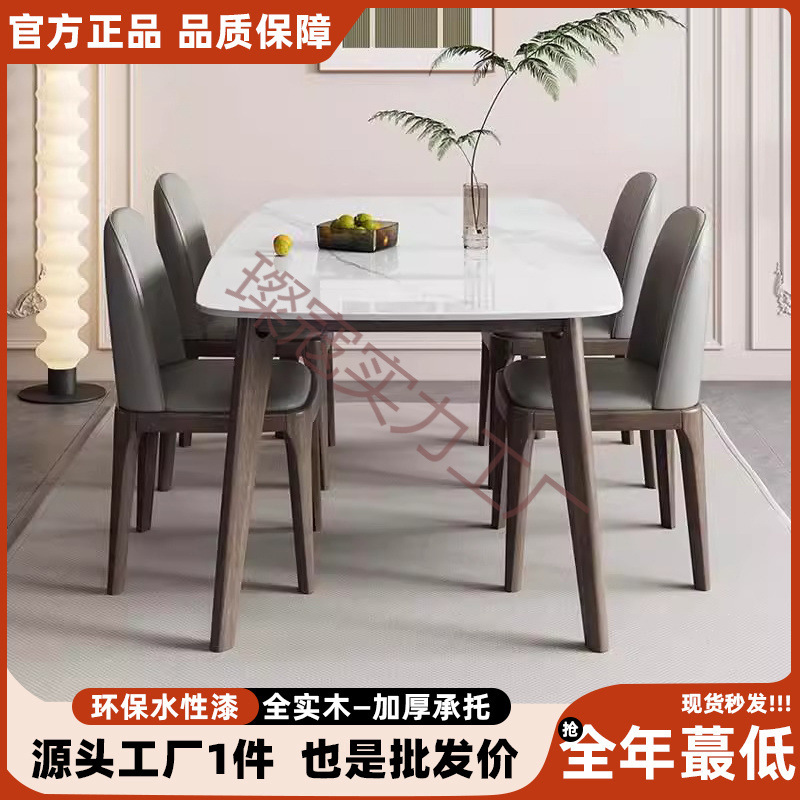 新型イタリア式岩板食卓実木家庭用長方形現代小戸型シンプル西食卓