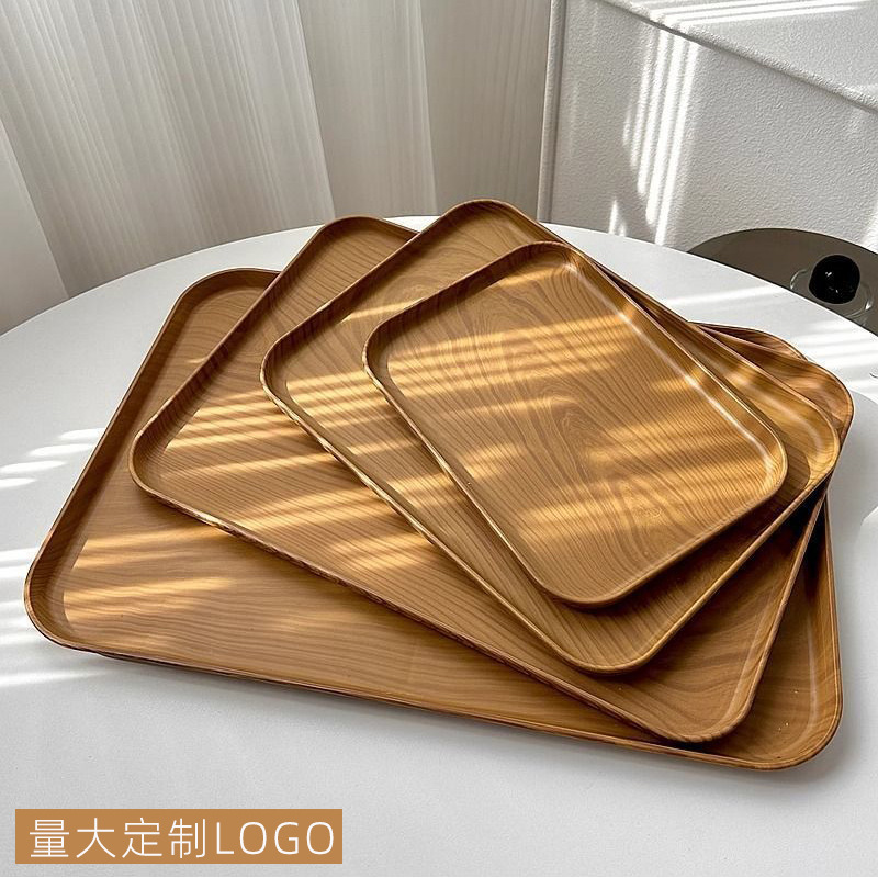 木目調プラスチック製トレイ 長方形食器 食品グレード 丸型業務用サービングパン パン皿 卸売