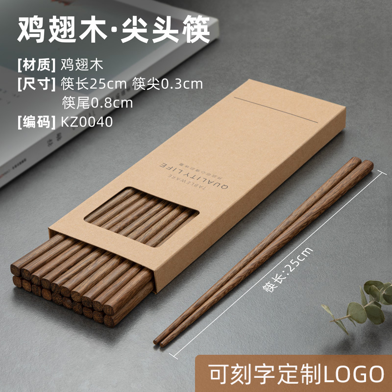 日本式の尖った鶏の羽の木の箸10足の家庭用の実木の長い速子は漆がなくてワックスがなくて滑り止めの料理の寿司の箸があります。