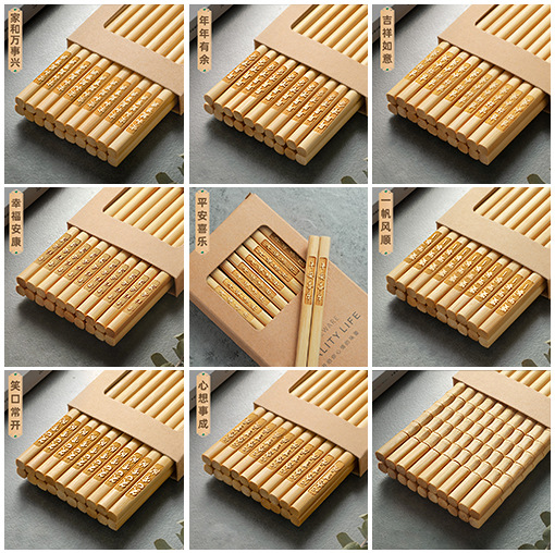 刻字楠竹箸10足無漆無ワックス天然家庭用木快子家庭用中国式防かび滑り止め箸